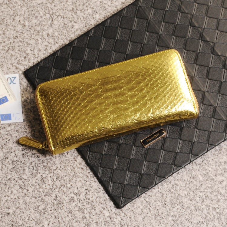 ダイヤモンドパイソンを贅沢な一枚革で使用した豪華な長財布。