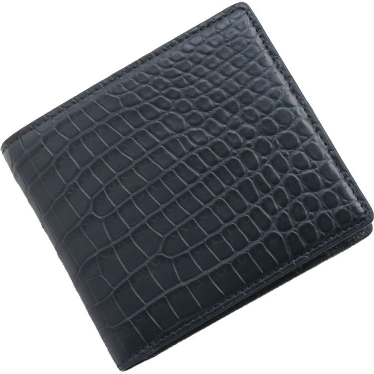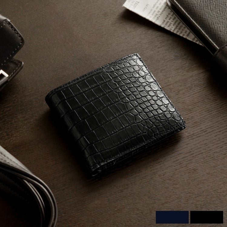 | 商品名:スモールクロコダイル 二つ折り 財布 小銭入れ付き ポロサス メンズ ブラック ネイビー 黒 安心 保証書 付き |