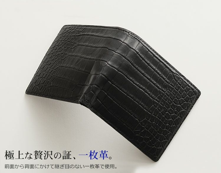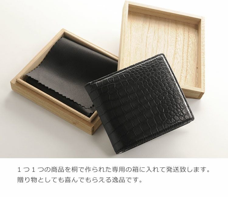 天然皮革 エキゾチックレザー スモールクロコダイル 二つ折り 財布 小銭入れ付き ポロサス メンズ ブラック 折り財布 本革 革 レザー 黒 安心 保証書 付き プレゼント ギフト 普段使い ギフト