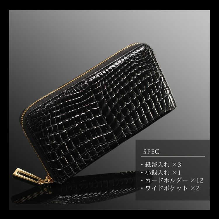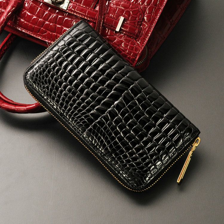 ナイルクロコダイルを使用したラウンドファスナー長財布。