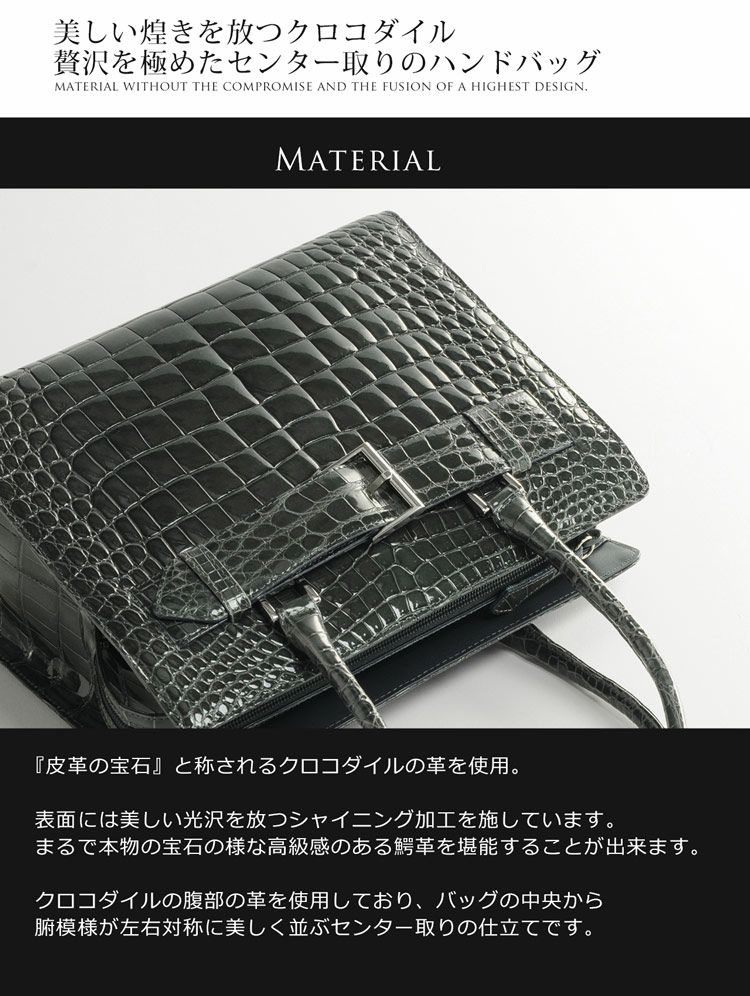 美しい光沢を放つクロコダイルの日本製ハンドバッグ。