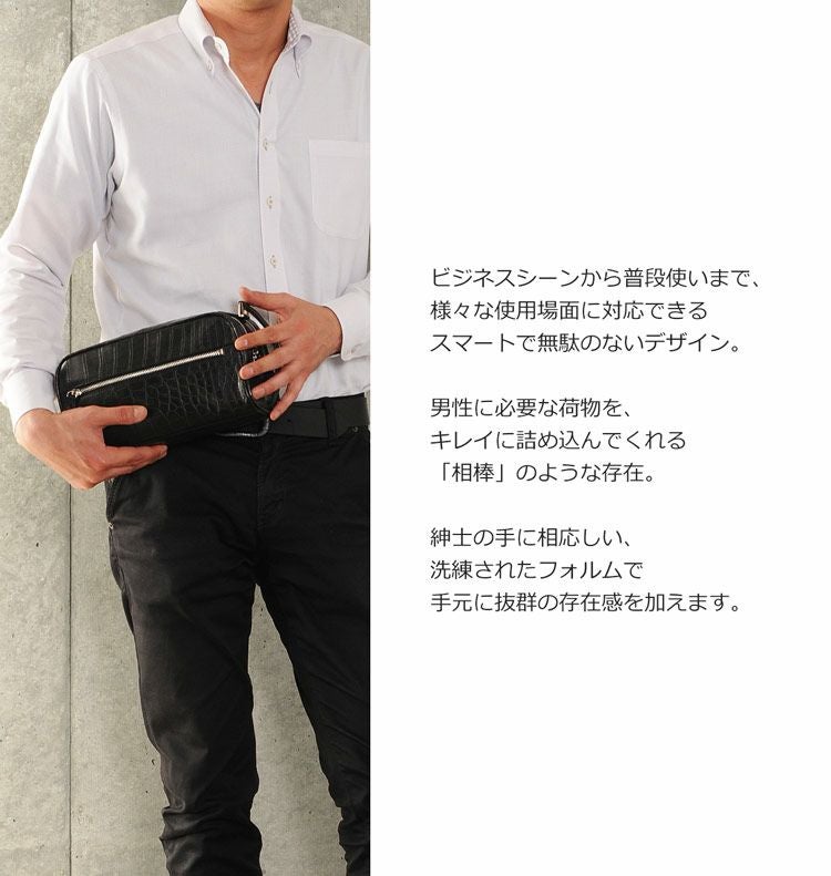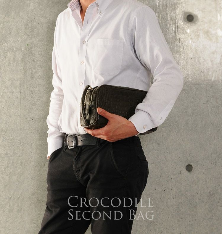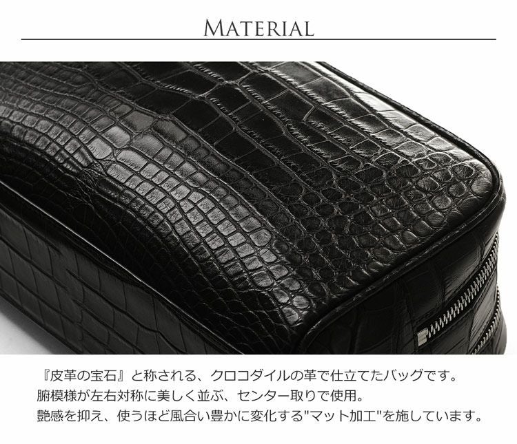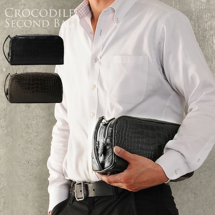 | 商品名:クロコダイル セカンドバッグ ダブルファスナー マット加工 / メンズ |