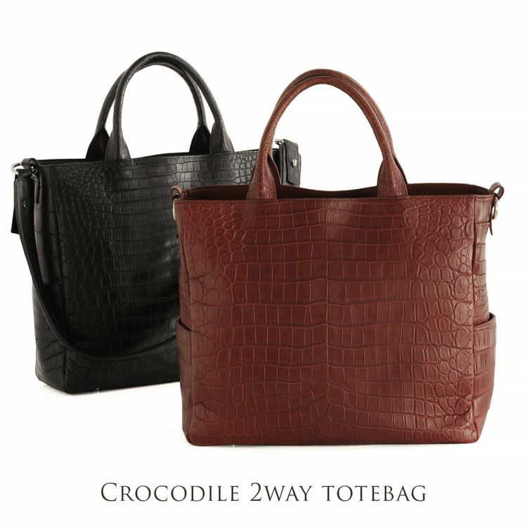 | 商品名:クロコダイル マット加工 トートバッグ 2WAY レディース ダークレッド/ダークブラウン/ネイビー/ブラック |