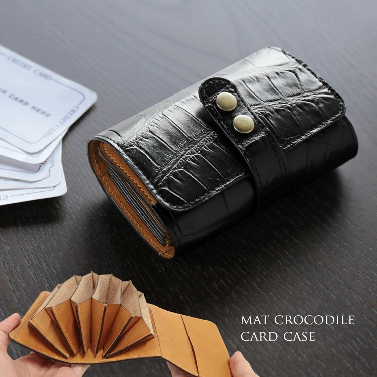 天然皮革 エキゾチックレザー クロコダイル カードケース メンズ 大容量 じゃばら状 マット加工 カード入れ カードホルダー ワニ革 本革 革 名刺入れ 使いやすい たくさん入る カード収納 18枚 ミニ財布 コンパクト プレゼント 誕生日 以外 男性 ギフト