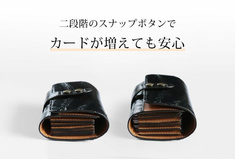 カードをたくさん入れて厚みが増してもしっかり留められるのが嬉しいポイントです。