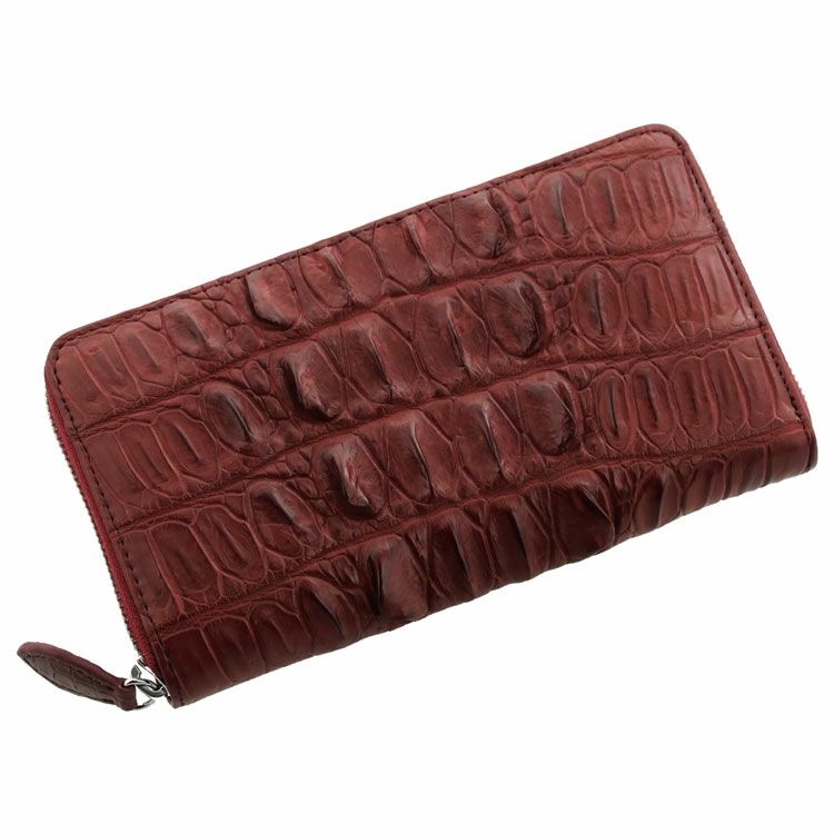 天然皮革 エキゾチックレザー クロコダイル ホーンバック 長財布 ラウンドファスナー レディース ワイン/ネイビー/ダークブラウン/ブラックワニ革 クロコダイルの背面側の革 ホーンバックを使用 プレゼント ギフト