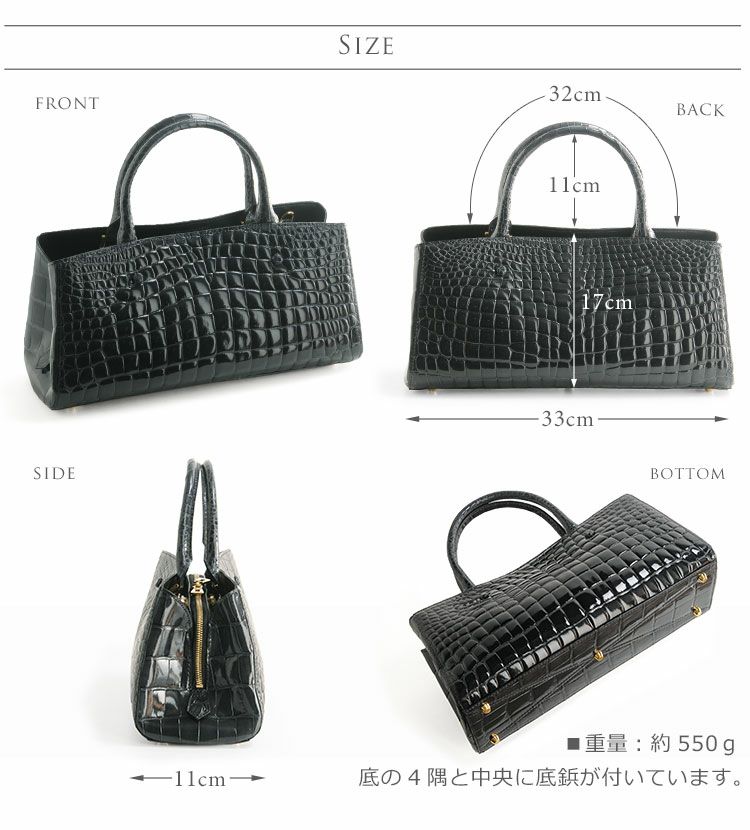2. クロコダイル ハンドバッグ 横型 レディース シャイニング 加工 センター取り 2WAY 仕様 全7色『クロコダイル保証書付き』 4FA
