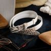 細身、シンプルなデザインでも存在感のあるクロコダイルレザーで大人の上品さを演出してくれるベルト。