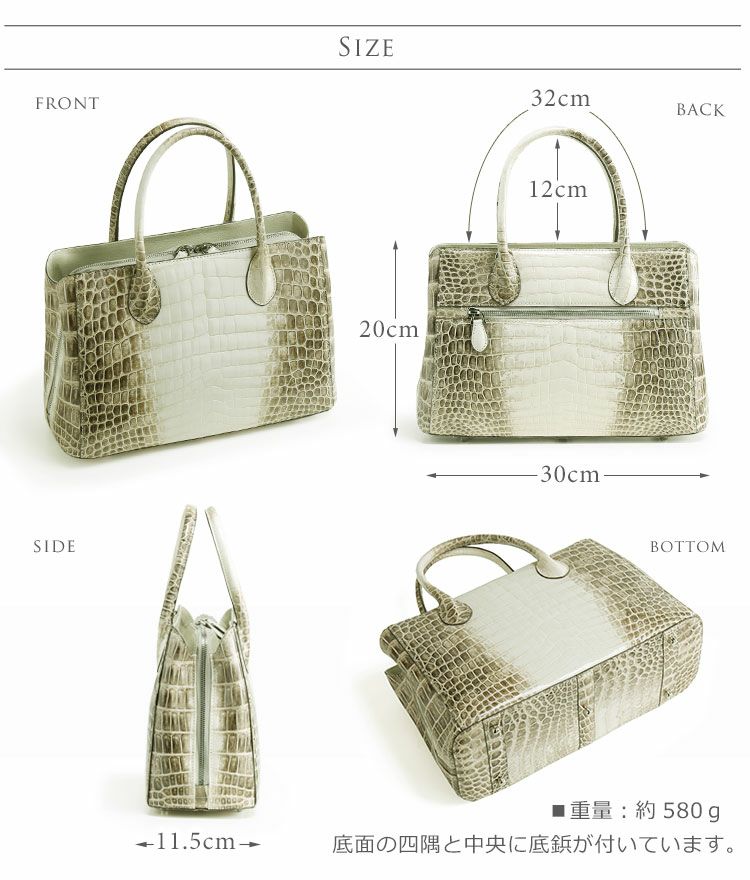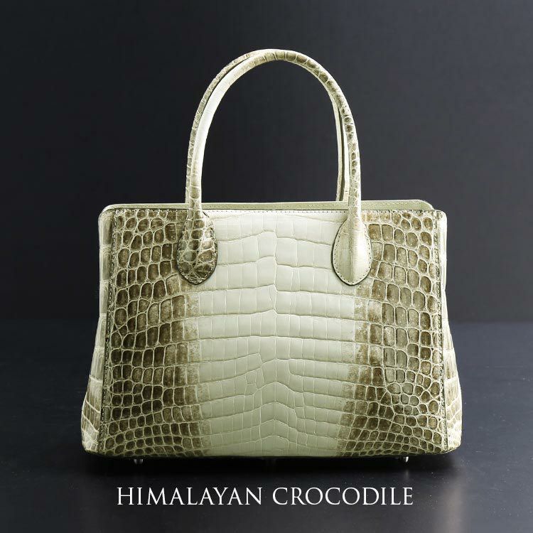 ホワイトカラーが美しいヒマラヤクロコダイルで仕立てたハンドバッグ。