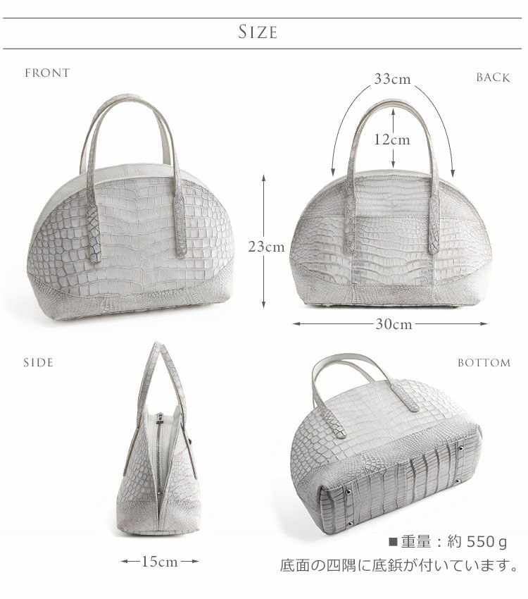 天然皮革 エキゾチックレザー ヒマラヤ スモール クロコダイル 日本製 ハンドバッグ ラウンドファスナー センター取り JRA ポロサス 本革 安心 保証書 付き フォーマルバッグ ギフト ladiesbag