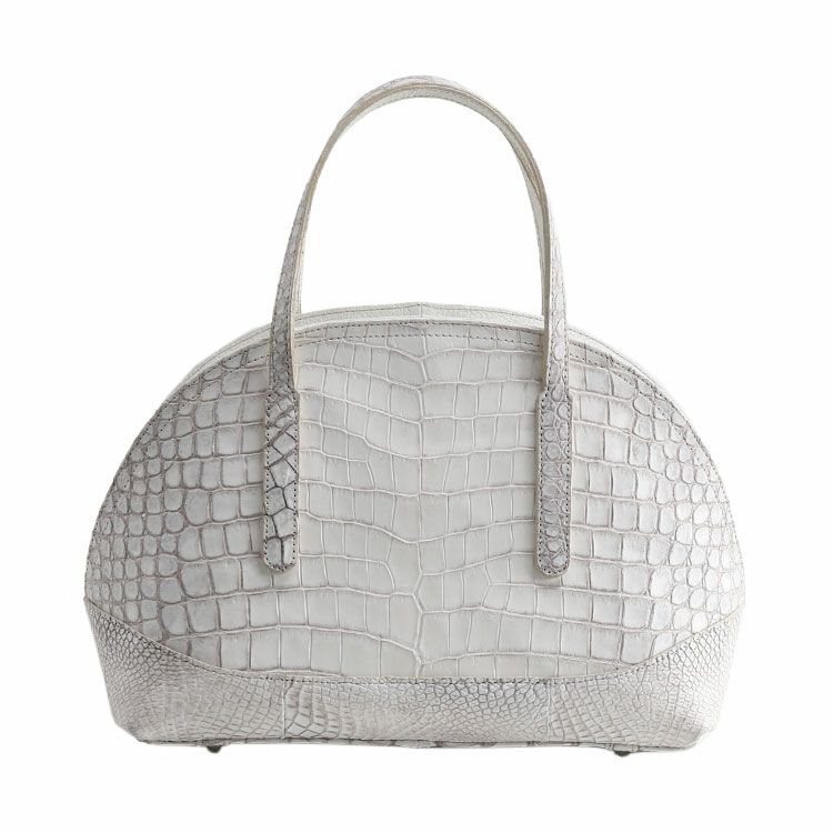 クロコダイルの腹部の革をバッグの中央に配しています。