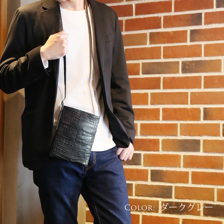 | 商品名:ソフト クロコダイル サコッシュ マット加工 内装 ラム革 メンズ |