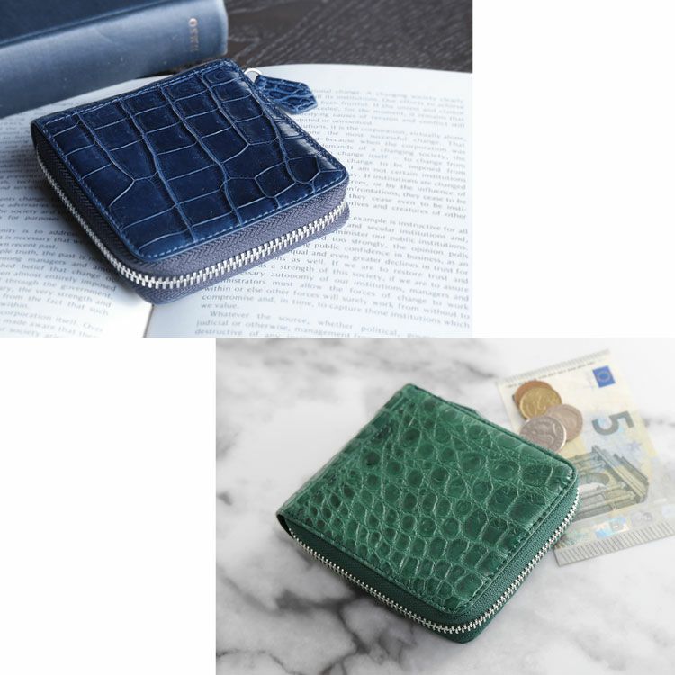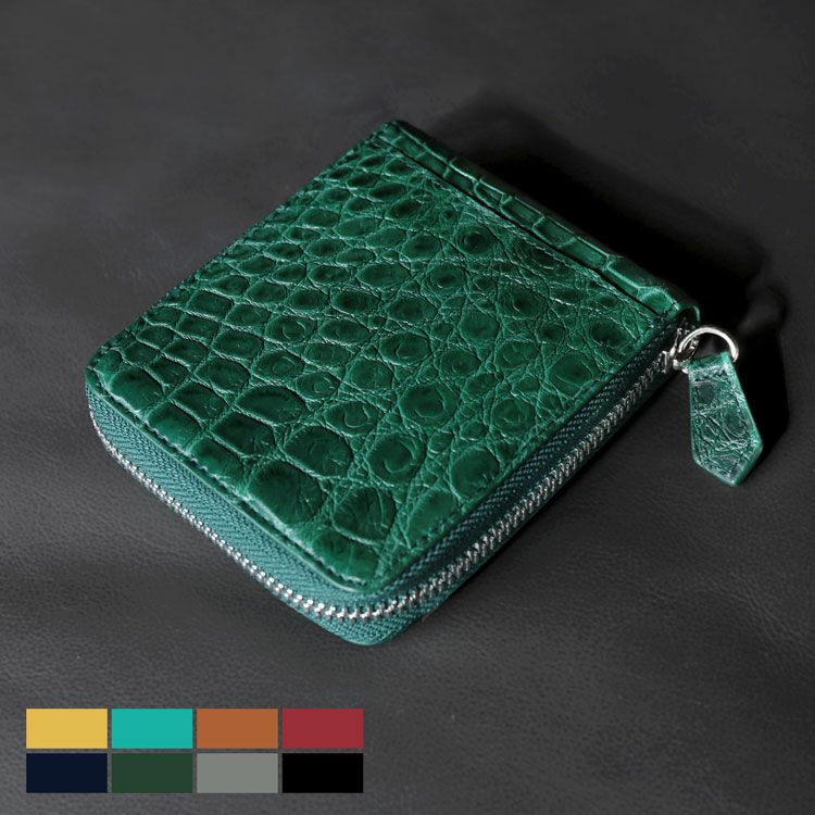 みんなが求める理想のコンパクト財布。 ラウンドファスナー開閉で中身をしっかり保護、 大きく開くので見やすく取り出し、会計もスムーズ。 ミニサイズながらもしっかりとした収納力。 憧れのクロコダイルレザーを多彩なカラーバリエーションの高品質・低価格で実現。 まさに『理想のコンパクト財布』 小さめのバッグにもコートのポケットにも入るコンパクトサイズ。 ファスナーを開けると安心のラウンドファスナー開閉。 掴みやすいふっくらとしたファスナーチャーム 内側:紙幣入れ×1、BOX型の小銭入れ×1、カードホルダー×5 外側:カードホルダー×1 その比類なき美しさから『皮革の宝石』と称されるクロコダイルの革を使用。 革には艶感を抑えたマット加工を施しています。 マット加工は使いながら革を育てるエイジング(経年変化)が魅力です。 使ってみたいけど予算が合わないなど 一度は使ってみたい憧れのクロコダイル財布 そんな願いを叶えるためメーカーと協力しお求めやすい価格を実現しました。 当店でよく売れているカラーを厳選し製作しました。