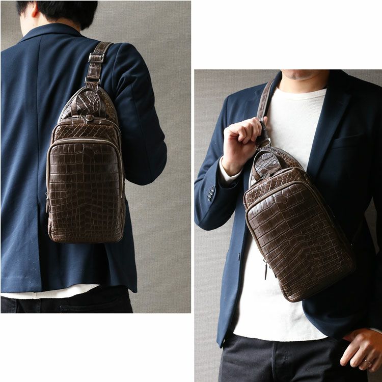 ※キーワード:ショルダーバッグ ボディバッグ スリングバッグ 鰐革 本革 クロコダイルバッグ メンズバッグ レディースバッグ カジュアル
