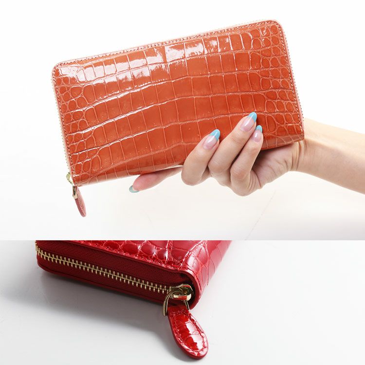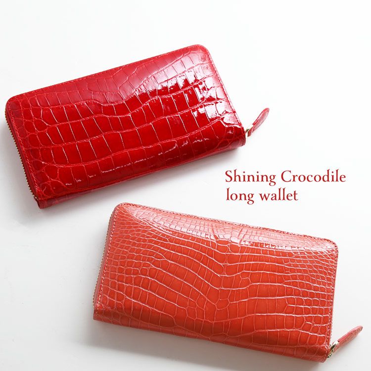 高級感あるシャイニングクロコの長財布。ラウンドファスナーで大きく開くので使いやすく、お会計の際などもスムーズです。