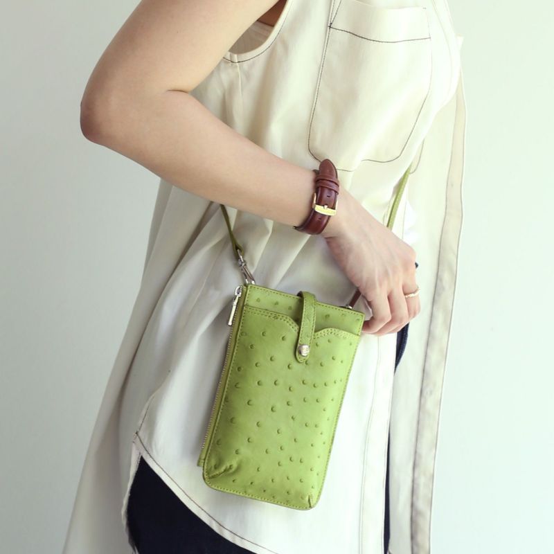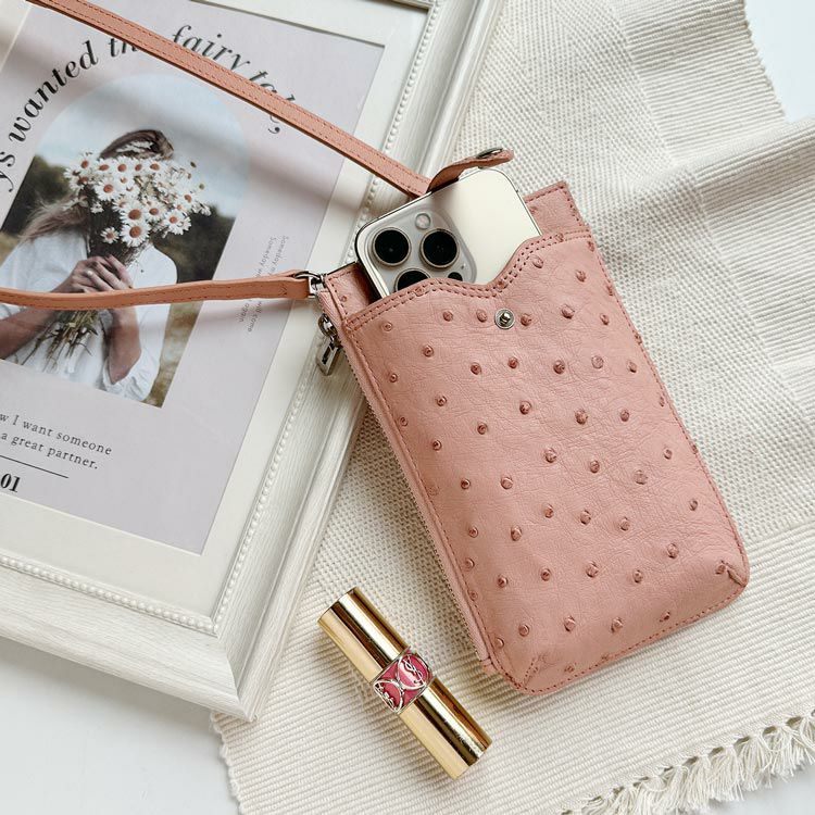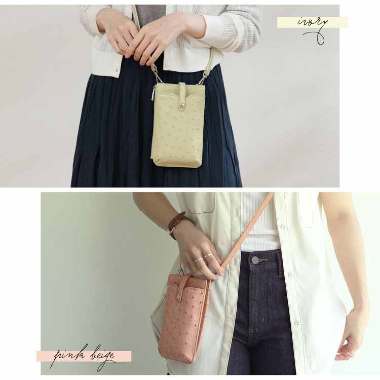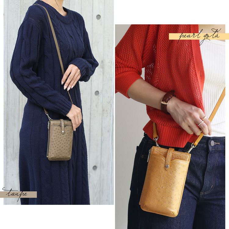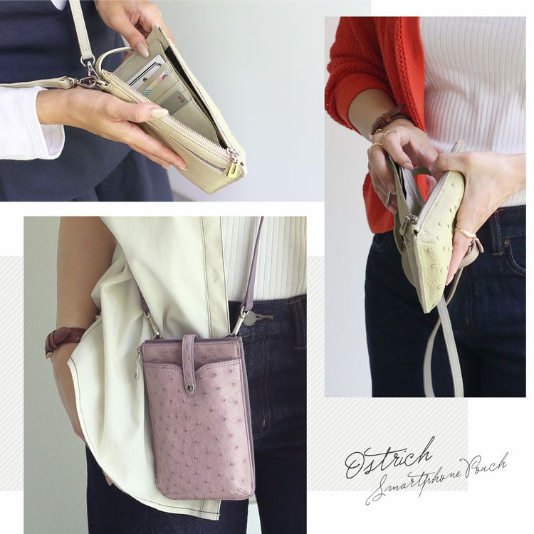 スマホショルダー バッグ 大人 かわいい 本革 オーストリッチ スマホポーチ レディース お財布バッグ お財布ショルダー スマホ スマートフォン ミニショルダー 縦 ポシェット 斜め掛け おしゃれ レザー 革 ギフト プレゼント