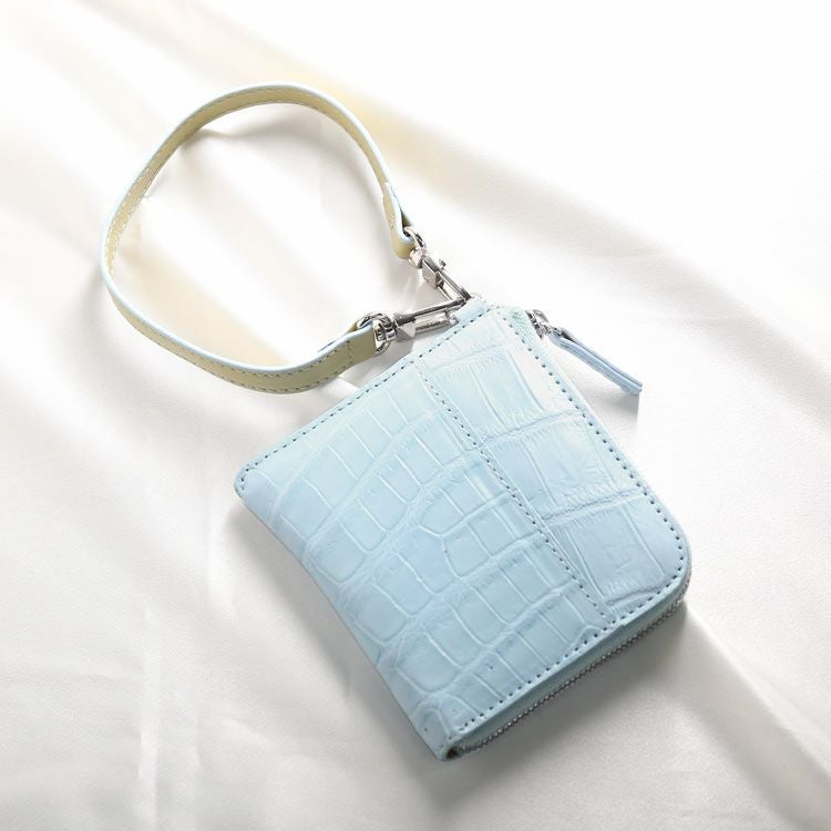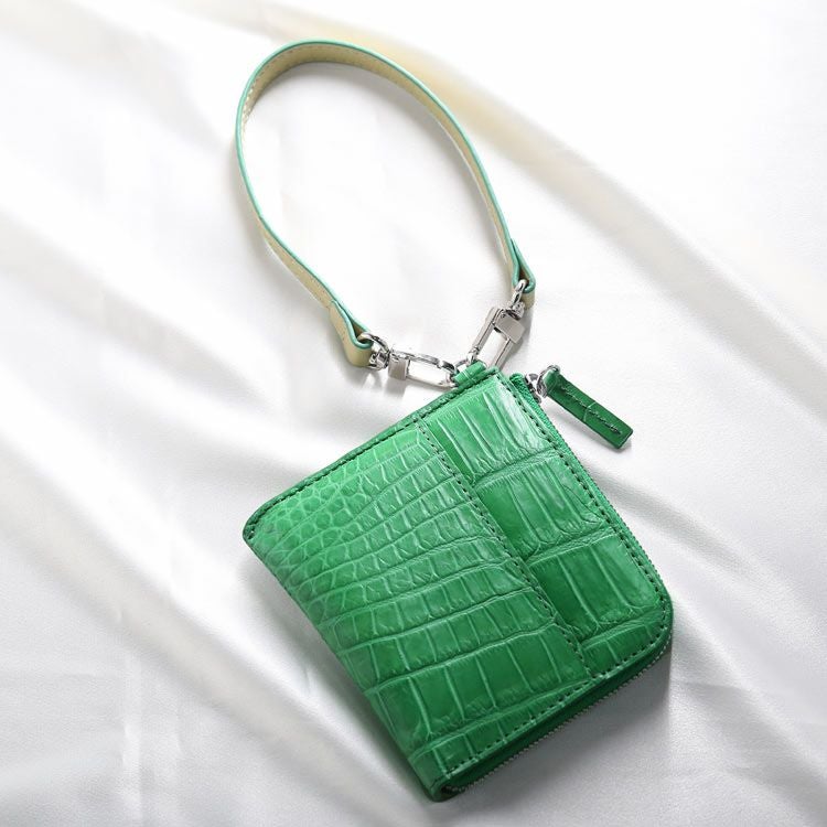 クロコダイル コンパクト財布 小さい財布 ラウンドファスナー L字ファスナー ストラップ レディース カード収納 軽量 ミニ財布 本革 クロコ コンパクト 財布 ユニセックス お揃い 使いやすい ギフト プレゼント