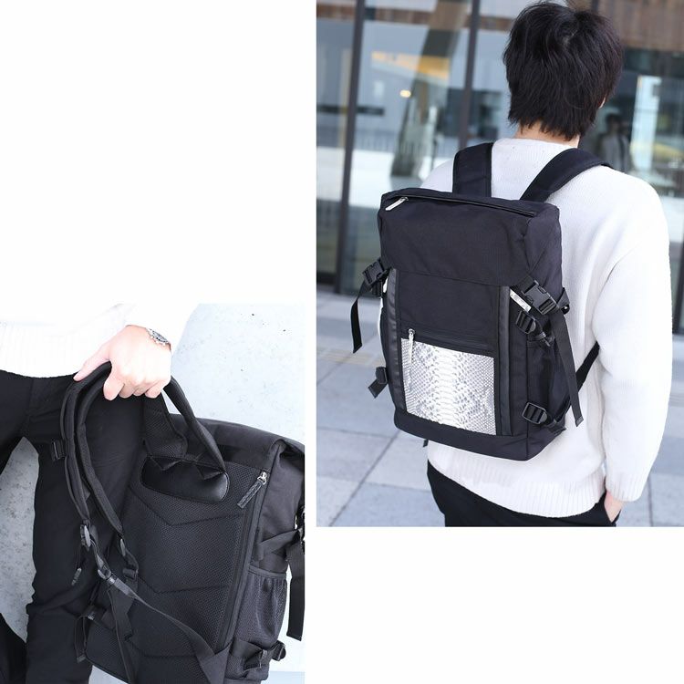 リュック メンズ パイソン & ナイロン ビジネスリュック サック 軽量 大容量 薄型 パソコン バックパック リュックサック A4 ナイロンリュック A4 大容量 通学 通勤 大人 大きめ プレゼント ギフト