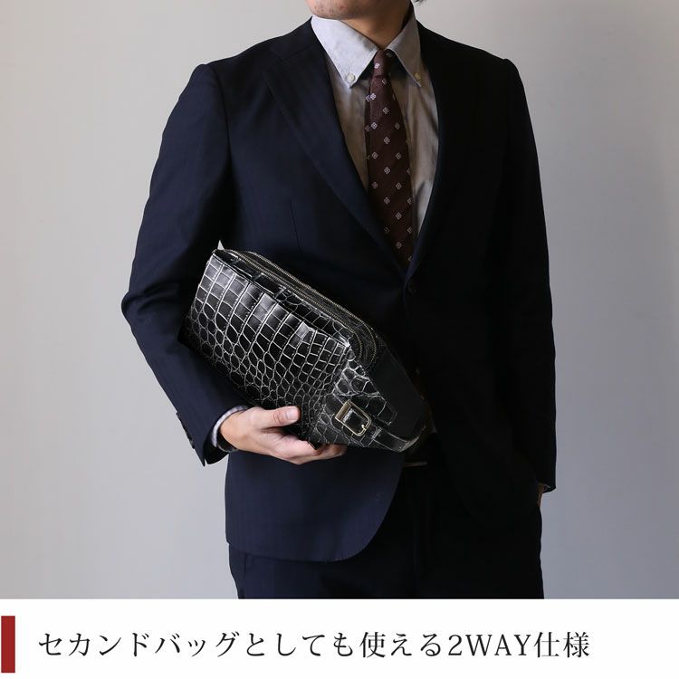 クロコダイル メンズ ボディバッグ 日本製 マット 加工 ショルダーバッグ 斜め掛けバッグ ウエストバッグ 2way セカンドバッグ 本革 鰐革 保証書付き JRA プレゼント ギフト