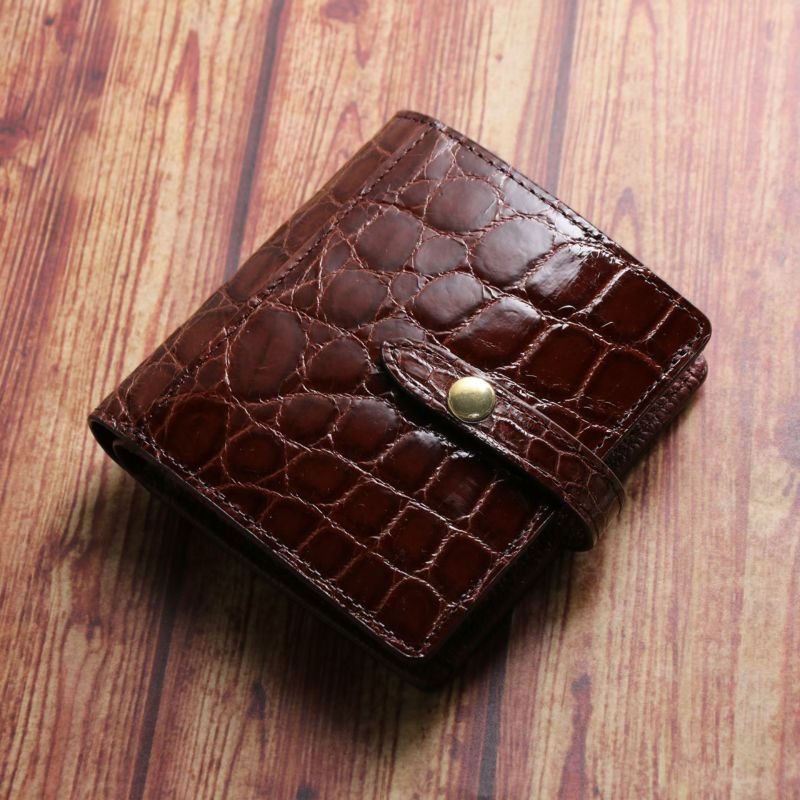 ベルトデザインがおしゃれなクロコダイルの二つ折り財布。