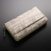 表側:クロコダイル 内装:牛革、生地 内装は内側側面と内側両外側のカード入れ部分は牛革を使っており、そのほかの部分は生地を使っています。 |