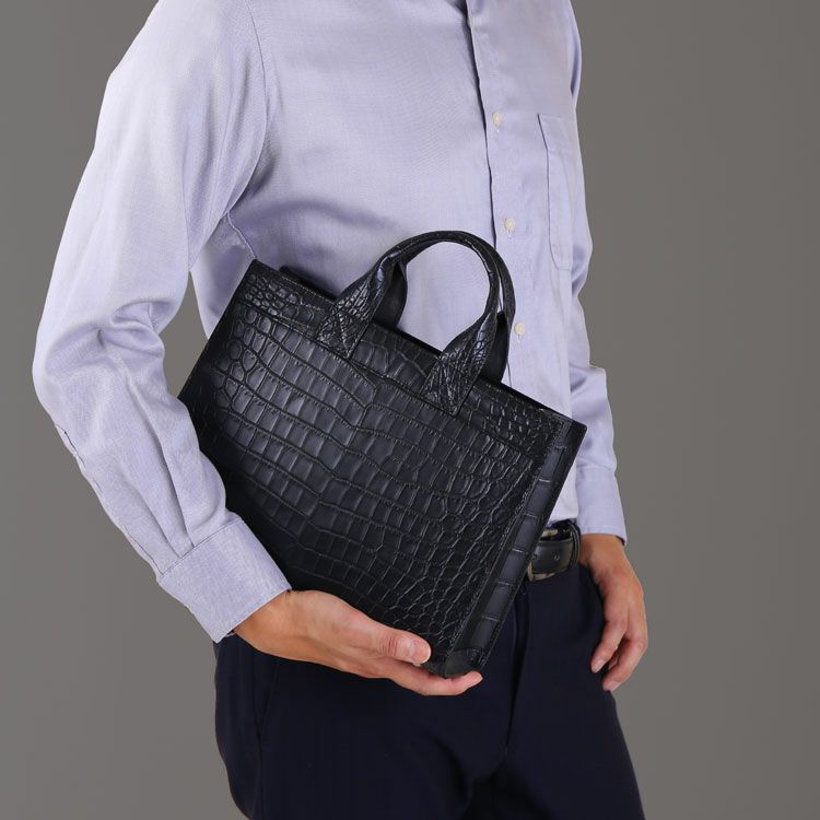 ※キーワード:クロコダイルバッグ メンズバッグ 本革 鰐革 ナイルクロコダイル センター取り ミニトートバッグ トート型 ビジネスバッグ 通勤バッグ B5サイズ ユニセックス 男性 女性 紳士 婦人