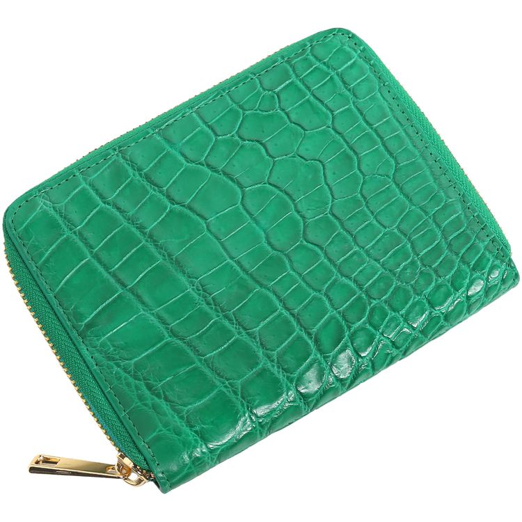 ※キーワード:クロコダイル マット カードケース オーガナイザー ラウンドファスナー コンパクトサイズ ゴールドファスナー 本革 ワニ革 鰐 財布