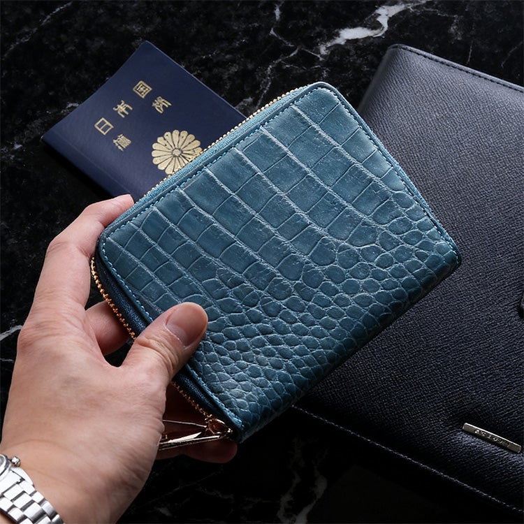 クロコダイル マット ラウンドファスナー コンパクト オーガナイザー カードケース sdカード パスポート 通帳 収納 ユニセックス 男女 レディース メンズ 鰐革 ワニ 本革(06001935r)