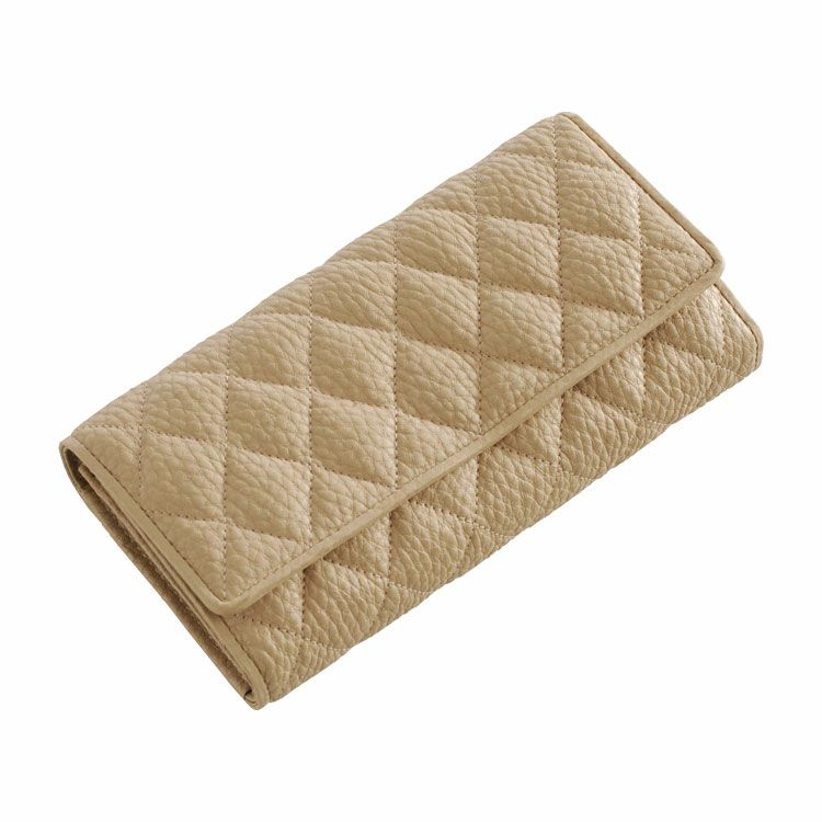 | 商品名:HALEINE[アレンヌ] 牛革 長財布 かぶせ ナチュラル シュリンク レザー キルティング / レディース |