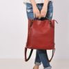 大人可愛いスタイルを演出する牛革手持ち型リュック。