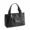 ブラックカラーの本革で仕立てたシンプルなデザインのハンドバッグ。