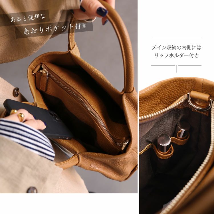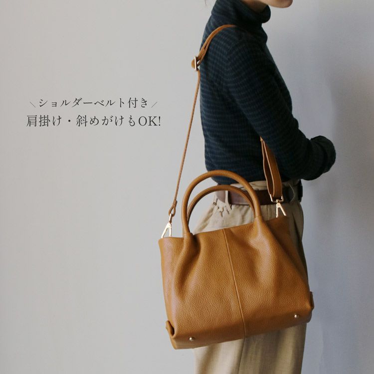 ふわっと柔らかく膨らんだシルエットが可愛らしいデザインのレザーバッグ。