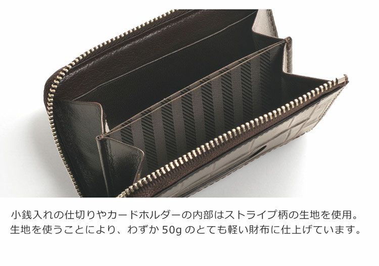 紙幣入れ内部やカードホルダーの内部は生地を使用し、財布を軽く仕上げています。
