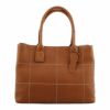 バッグの正面に格子状のステッチがデザインされた牛革ハンドバッグ。