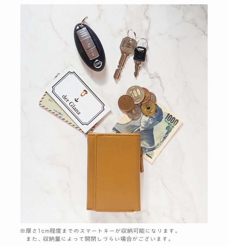 本来、お金やカードを収納するための財布。家や車のカギを収納するキーケース。 考えてみるとどちらも大切なものを収納するとっても大事なモノ。 そんな大事なモノを別々に分けて持つより、 1つにまとめる方が絶対いいと思ったのが本製品の始まりです。 ご購入のお客様から嬉しいお言葉を頂いています。 ▽ お客様のお声をご紹介 ▽ 現金の支払いが少なくなり、スマートな財布を探していたところ、この商品を見つけました。 キーケース機能と財布機能、最高です。 仕事用のカギと財布をひとつにまとめられないかなと検索して見つけました。 他のお店からも類似商品は沢山ありますが、 ・お札を折らずに入れられる ・カギが4つ収納できる ・硬貨が取り出しやすそう ・カードの収納が3箇所ある こちらの商品の機能が良かったです! ・キーリング×4 ・小銭入れ×1 ・紙幣入れ×4 ・カードホルダー×3 ミニバッグにすっぽり入ります。