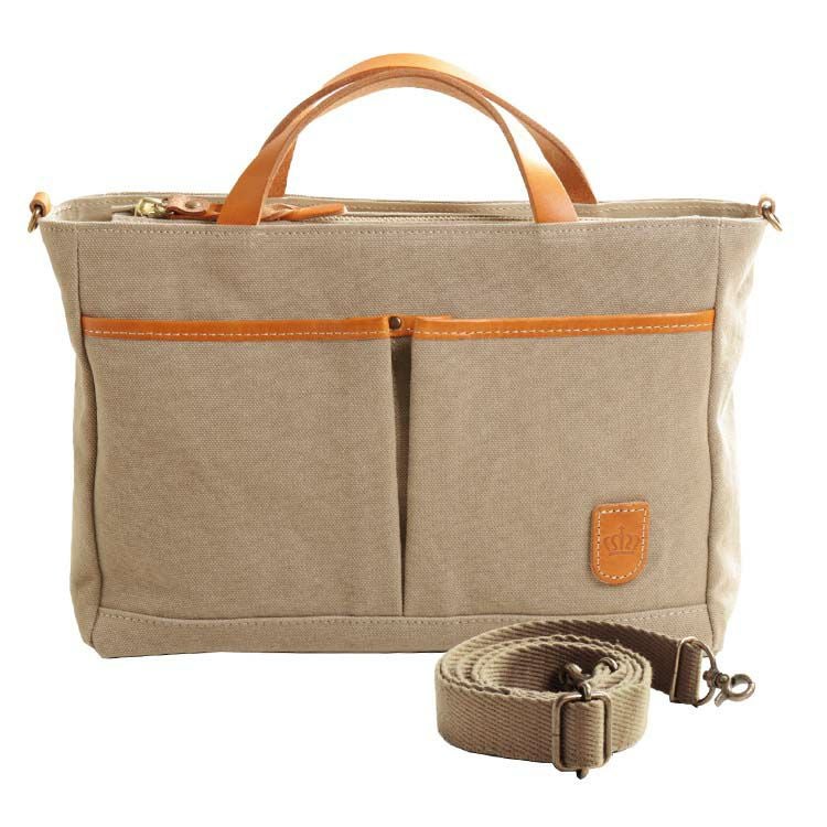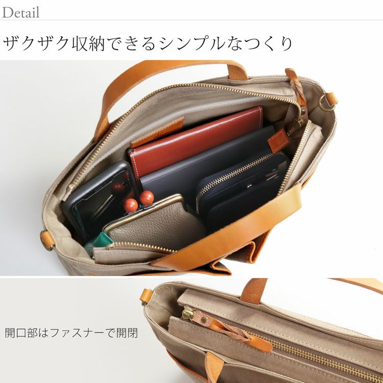 表側:帆布 、牛革(本革) 内装:生地、一部本革 |