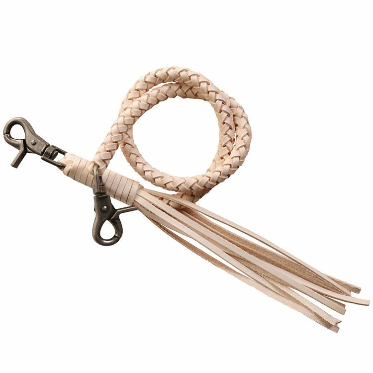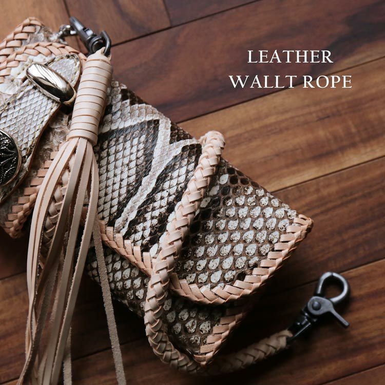 ヌメ革を編み込んだロープにフリンジが付いたウォレットロープ。