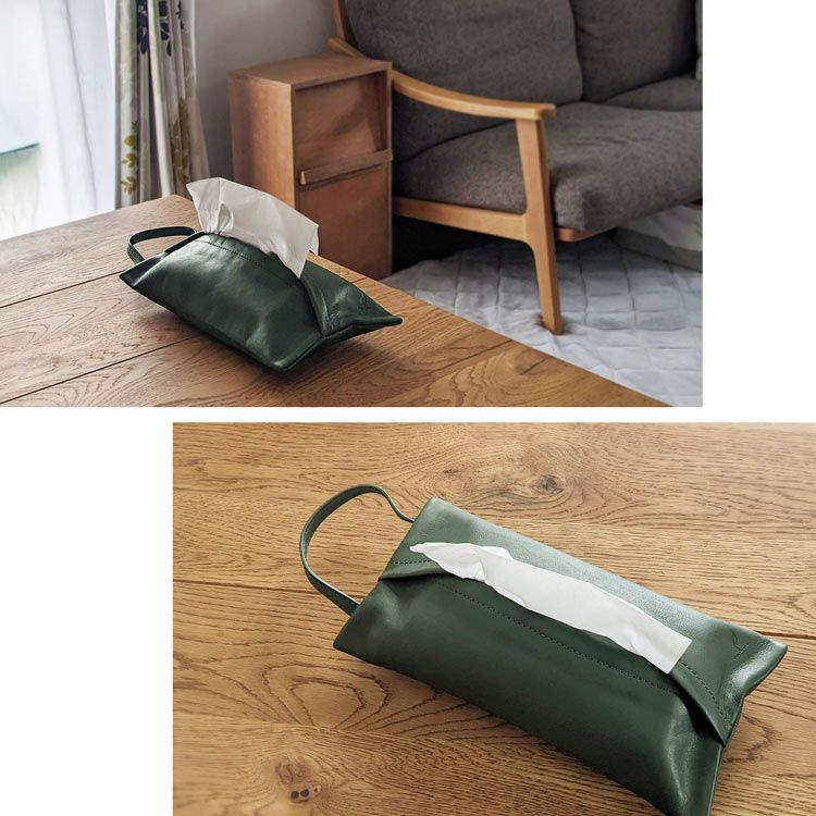くたっとした柔らかな質感が 特徴のノヴァレザー。 革の自然な表情を残し、 ナチュラルな風合いで仕上げました。 長く愛用したくなる味わいのある革です。 日常シーンに温もりと上質さをプラス 本革ならではの柔らかいフォルムで インテリアに自然と溶け込みます。 ループが付いているので様々な場所に 吊るしてお使いいただけます。 洗面台の横にかけてペーパータオルの 収納ケースにしたり、 車のヘッドレストに付ければ デッドスペースを有効活用できます。