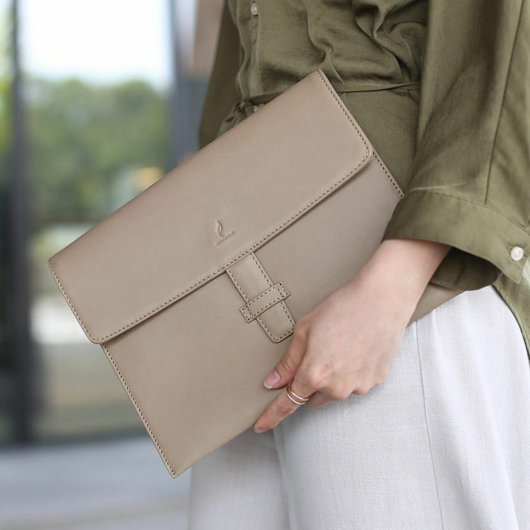 手軽に使える革製品を提案するmienoから、 素材にこだわる大人のための新シリーズ登場。 使っていく人のセンスを格上げしてくれる nova(ノヴァ)レザータブレットケースを お楽しみください。 本革ならではの温もりのある風合い。 味のある表情で大人っぽい雰囲気を プラスしてくれます。 シンプルで使いやすく、機能美にも優れた 牛革タブレットケース。 出し入れもしやすく 無機質になりがちなケースで 他人とは違うお洒落さを演出。 メインの収納スペースの他に 複数のポケットがあるので、 周辺機器やアクセサリーも まとめて持ち運ぶことができます。 内側にはタブレットポケット×1、ワイドポケット×1 ワイドポケットの内側にはフリーポケット×2 外側背面にはワイドポケット×1 iPad Air 10.9インチ 2022年 (第5世代)や iPad(無印)10.2インチ 2021年 (第9世代)が ちょうど入るサイズのタブレットケース。 ※画像はiPad10.2インチになります。 縦250mm/横175 mm/厚み6 mm 差し込み式ベロで開閉 ロゴとステッチデザインで表情のあるデザイン。 くたっとした柔らかな質感が特徴のノヴァレザー。 ナチュラルテイストな風合いで上品な印象。 長く愛用したくなる味わいのある革。