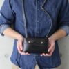 ショルダーウォレットのように肩から下げたままお金やスマホをパッ!と取り出せます。
