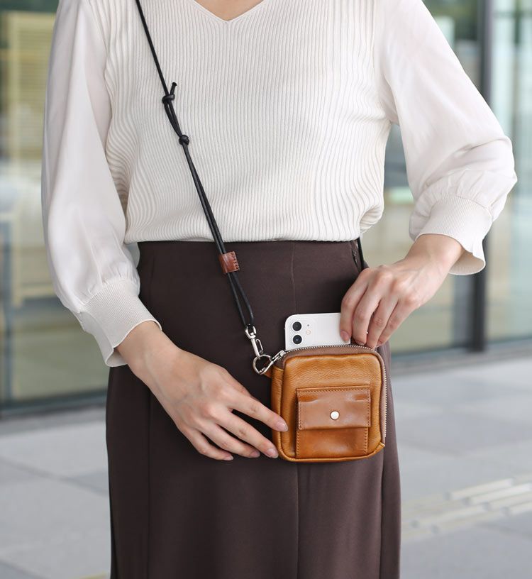 急な電話にもこのネックポーチならスムーズに対応可能。