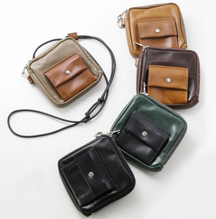 ポーチ本体とコインポケット部分でそれぞれ異なる牛革を使用し、