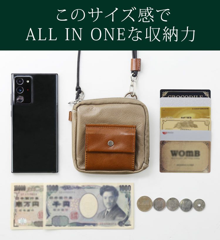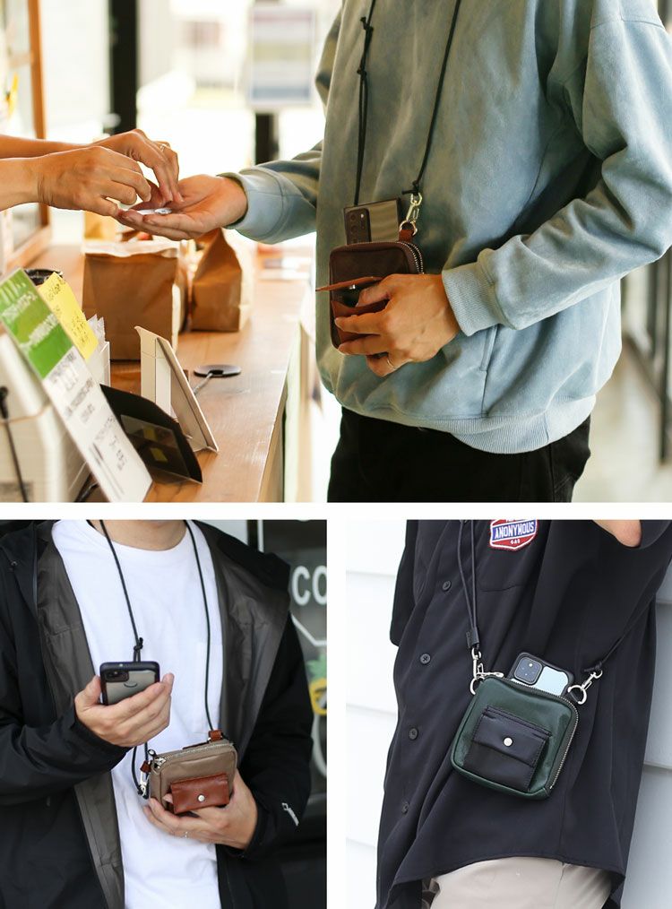 スマートフォン・硬貨・紙幣・カードなどこれひとつで収納可能。