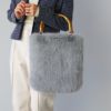 5. ファーバッグ レディース バンブーハンドル Lサイズ バッグ エコファー ハンドバッグ 軽量 a4 ふわふわ 7F (07000572r)