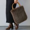 ※キーワード:トートバッグ エコファーバッグ バンブー 持ち手 ハンドル バッグ 竹持ち手 可愛い 女性 フェイクファー 秋バッグ 冬バッグ かわいい a4サイズ