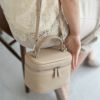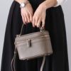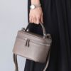 コロンとしたボックス型のデザインが可愛らしいバニティバッグ。