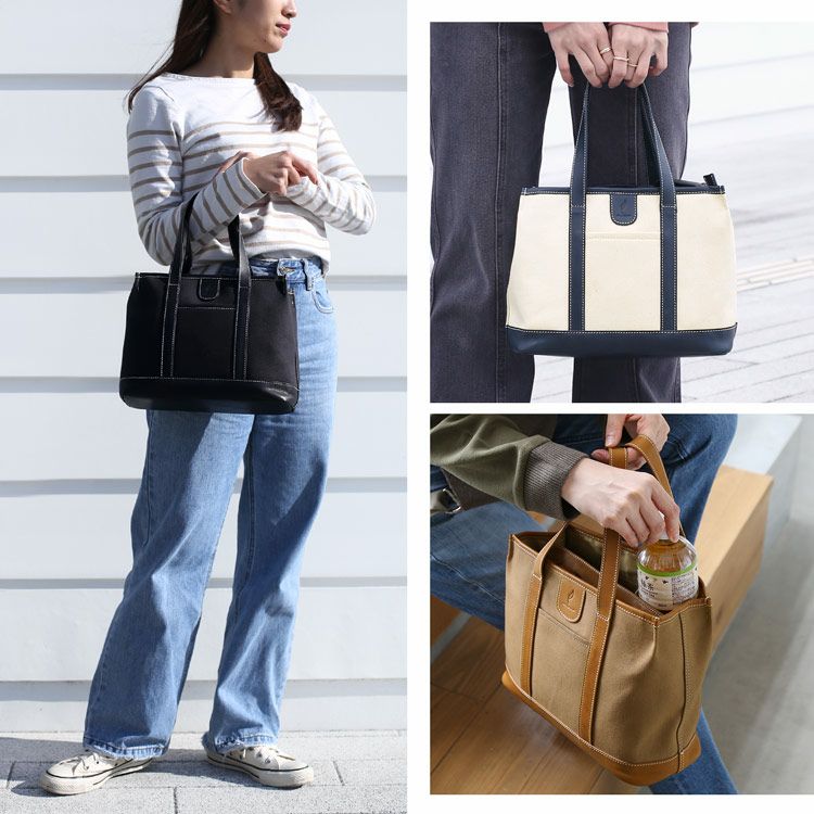 仕切り トートバッグ レディース ミニトート バッグ 小さめ 軽量 mieno ファスナー付き 収納 キャンバス 帆布 牛革 レザー 小さいバッグ ランチバッグ マザーズバッグ 可愛い b5 自立 マチ広 通勤 ギフト プレゼント