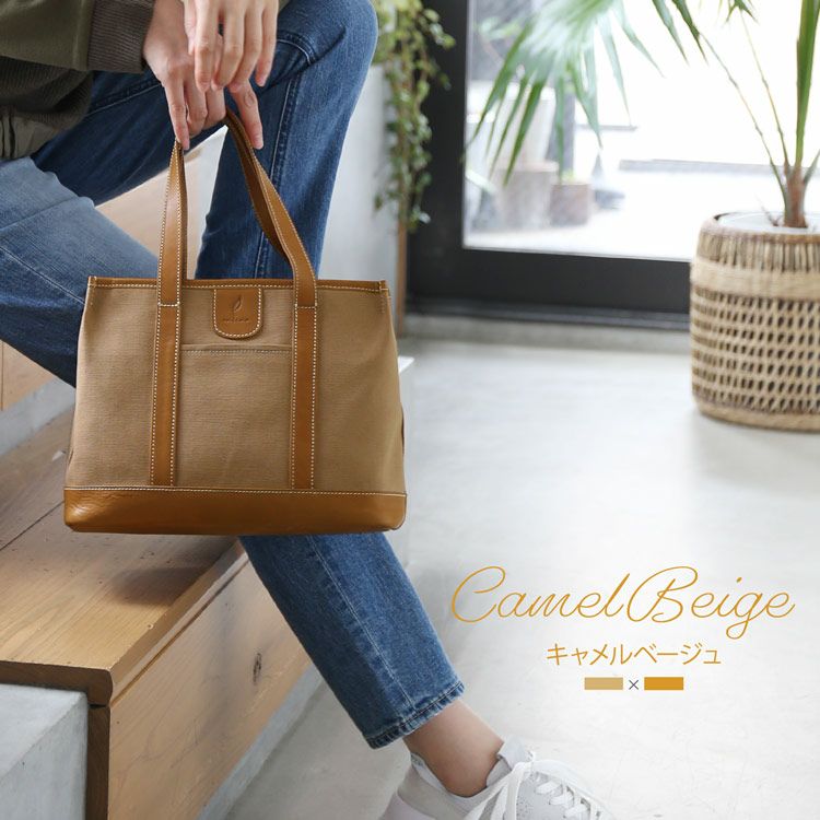 mieno 仕切り トートバッグ ハンドバッグ キャンバス レザー キャメル ベージュ