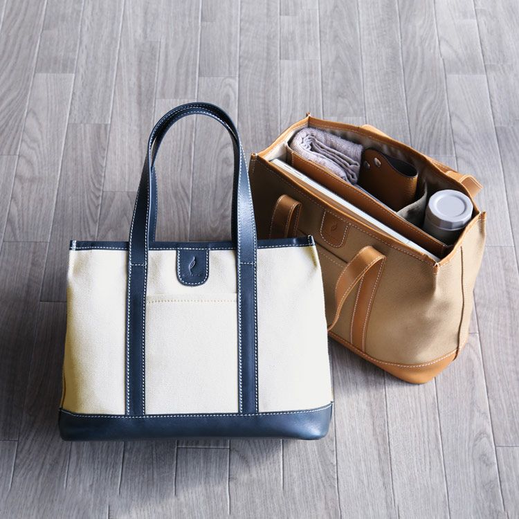 mieno 仕切り トートバッグ ハンドバッグ キャンバス レザー 収納 整頓