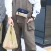 〇ポーチ裏面にあるファスナーポケットの中にはエコバッグが入っていて、コンビニなどでのお買い物にぴったり。